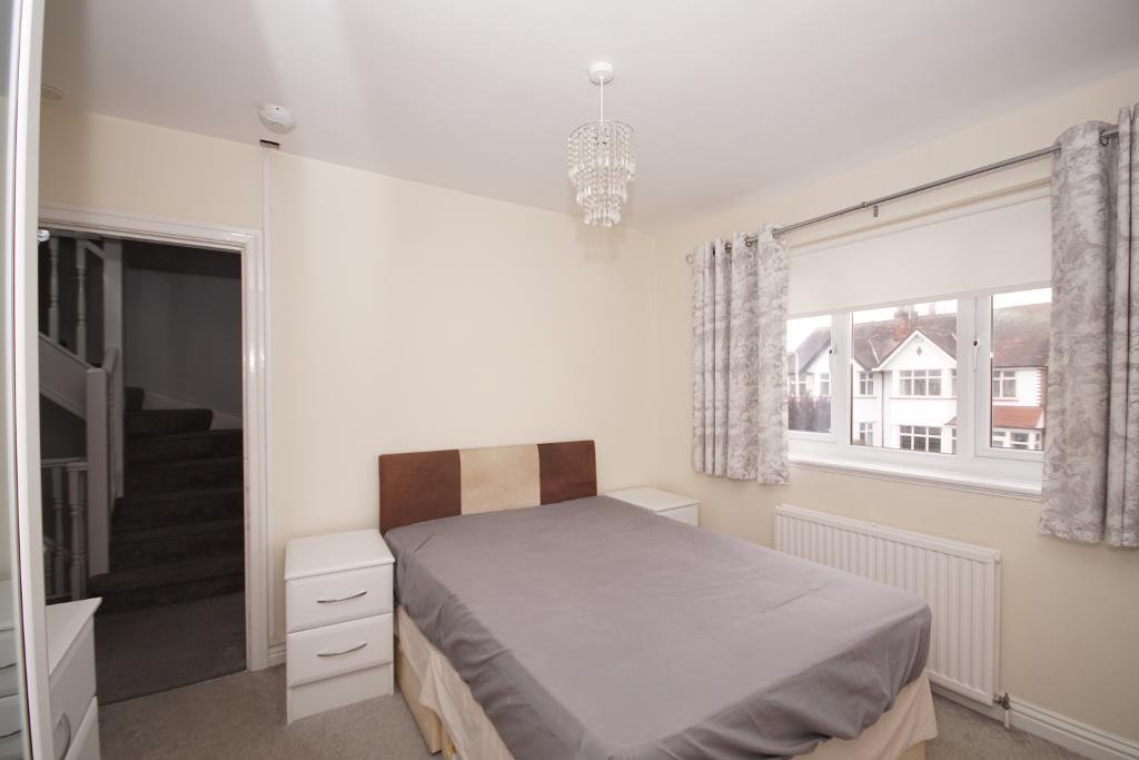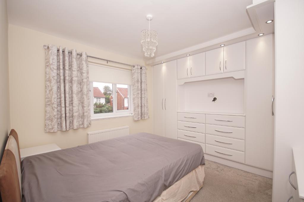 12' 9'' x 10' 10'' (3.9m x 3.31m) Rear double bedroom with a full suite of bedroom furniture including dressing table, chest of drawers, full height wardrobes and over head storage. UPVC glazed rear window and panelled radiator presented below.