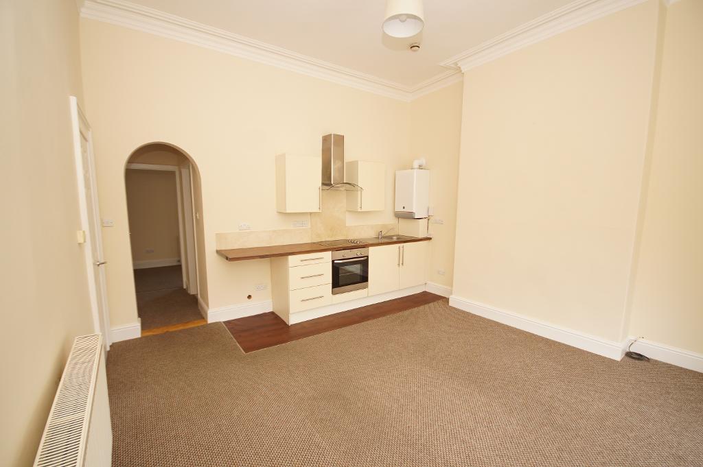 17' 7'' x 13' 11'' (5.36m x 4.25m) Spacious front reception lounge with a bay to the front aspect. Panelled radiator to the internal sidewall. The lounge is open plan to a rear fitted kitchenette which is comprising of a stainless steel sink & drainer, electric oven, electric hob and overhead extractor. A selection of base & eye level units are fitted within. Wall-mounted gas central heating boiler mounted to a high level.