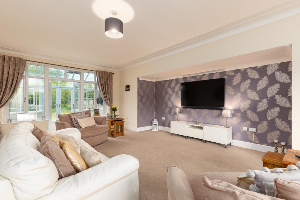 25' 3'' x 17' 2'' (7.72m x 5.25m) An extensive family-through lounge with uPVC glazed windows to the front and rear aspect. In addition there are French doors that open through into the light and bright rear conservatory. A panelled radiator is presented below the front window.