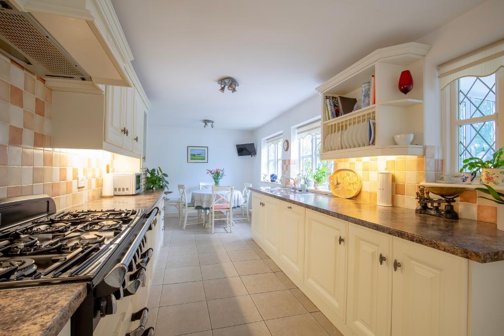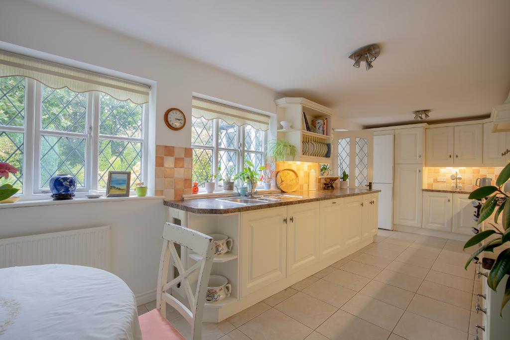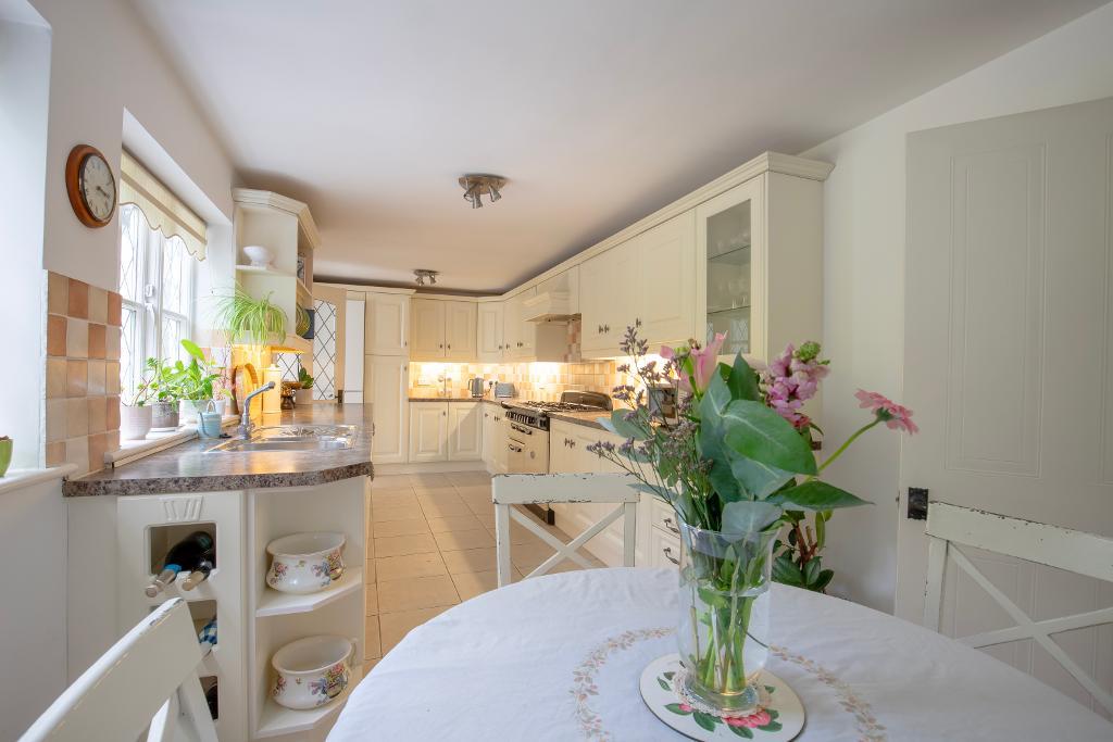 The heart of the home is undoubtedly the kitchen, designed with a traditional cottage feel, featuring an excellent range of upper and lower units, and complemented by an integrated dishwasher. There is also plumbing for a washing machine. A door from the kitchen leads into a charming conservatory, where double patio doors open out into the garden.
