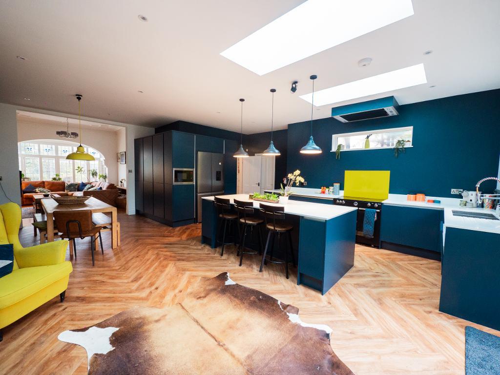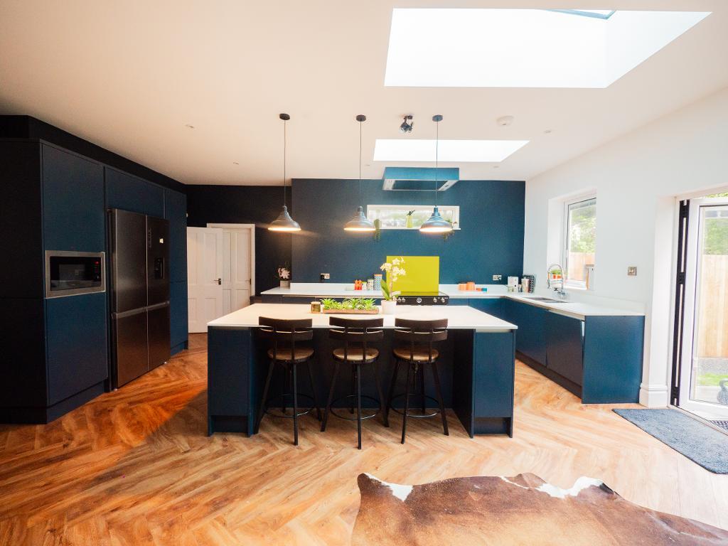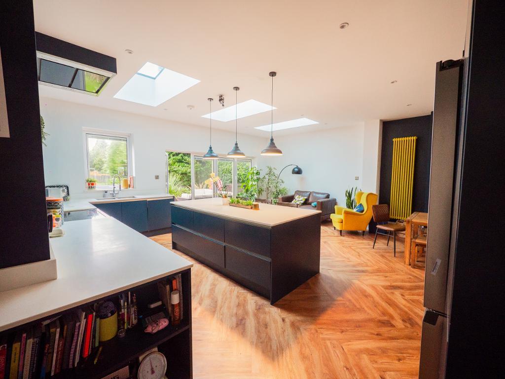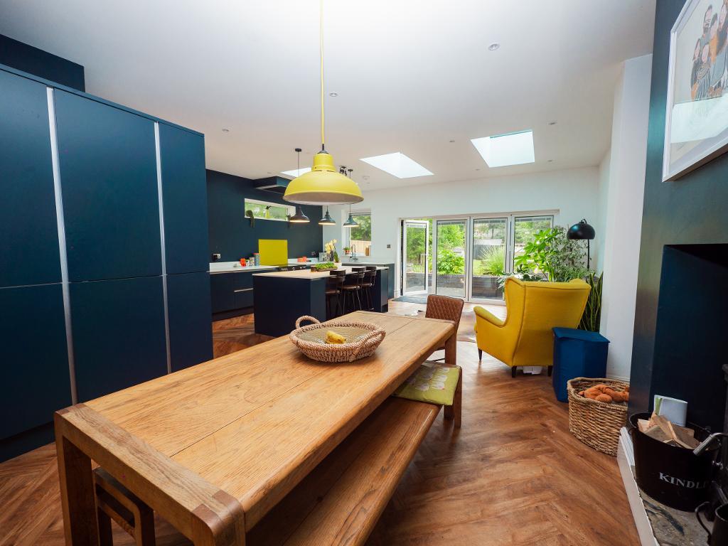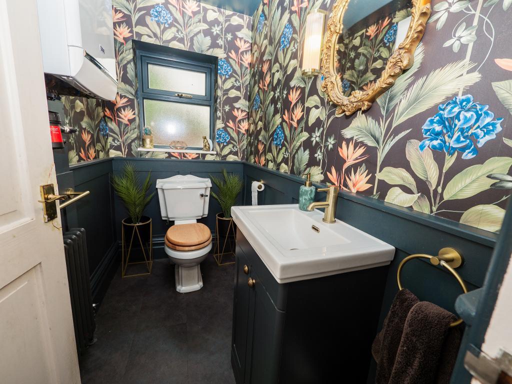 Stepping inside, you are greeted by an airy entrance hallway that immediately gives a sense of warmth and homeliness. To the left, the beautifully decorated lounge features large windows that fill the room with natural light. To the right, the cosy living room also benefits from bright windows and flows seamlessly into the open-plan kitchen and dining area. The kitchen has been finished to an exceptional standard, complete with a large central island and ample counter space, making it both practical and stylish. From here, bi-folding doors open directly onto the garden, perfect for family life and entertaining. A convenient utility room is accessed via the kitchen, while the tastefully decorated downstairs WC is located off the main hallway.