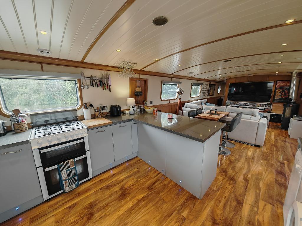 Currently moored at Scarisbrick Marina, this is an ideal opportunity to purchase a beautifully maintained and lovingly fitted wide beam barge, perfectly suited for those dreaming of an escape from the bustle of everyday life into a slower, more peaceful way of living.