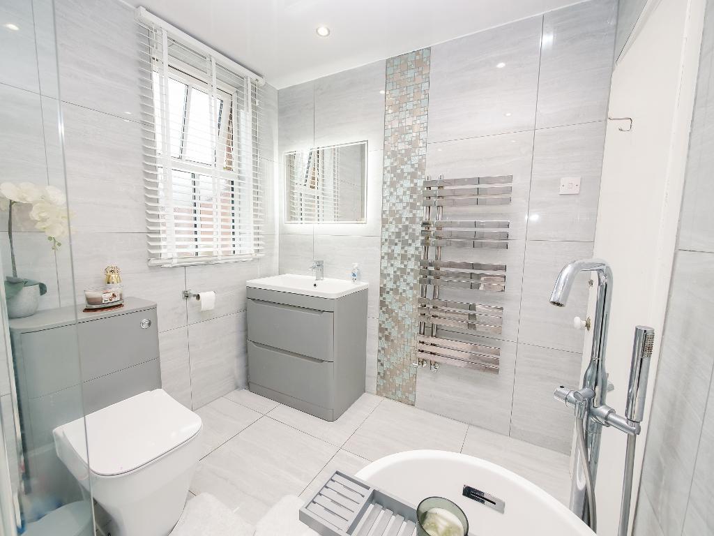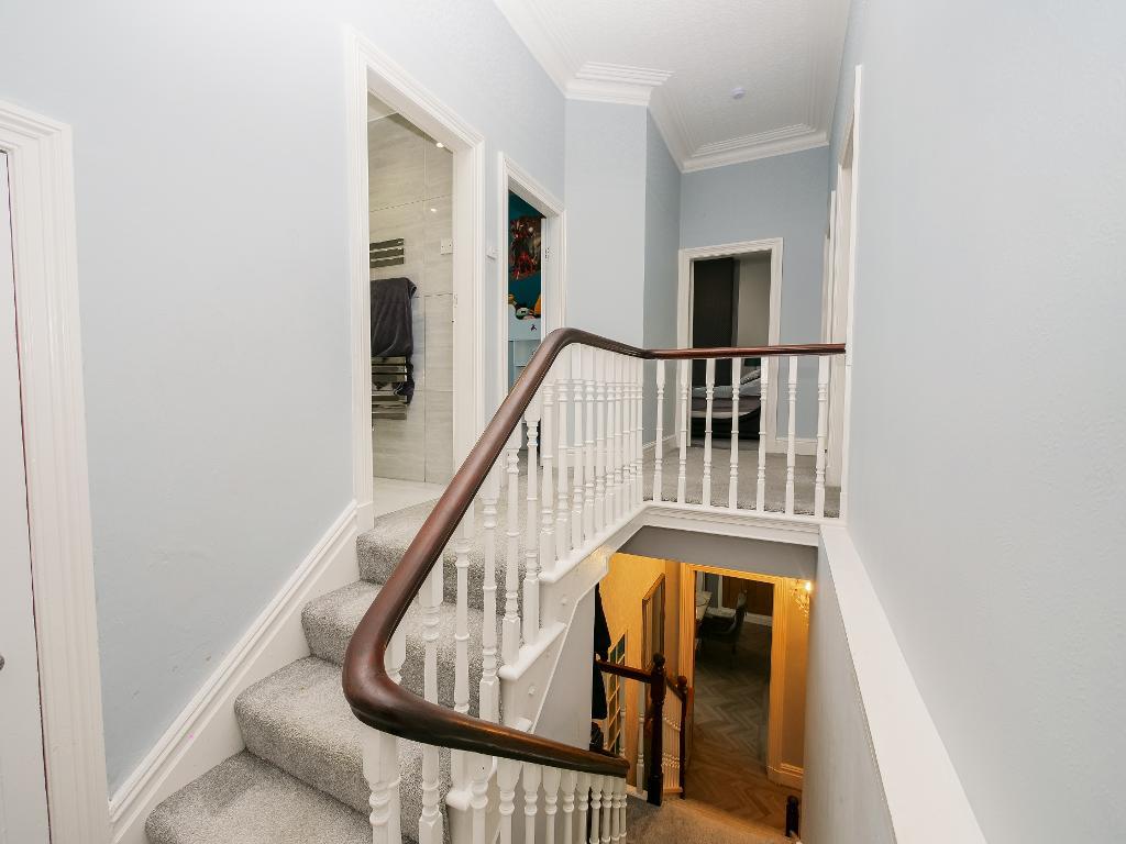 Upstairs continues the theme of warmth and space. The family bathroom offers both a free-standing bath and a separate shower, combining luxury and practicality. Off the landing, there are five good sized bedrooms, each bright and welcoming with ample natural light, ideal for a growing family.