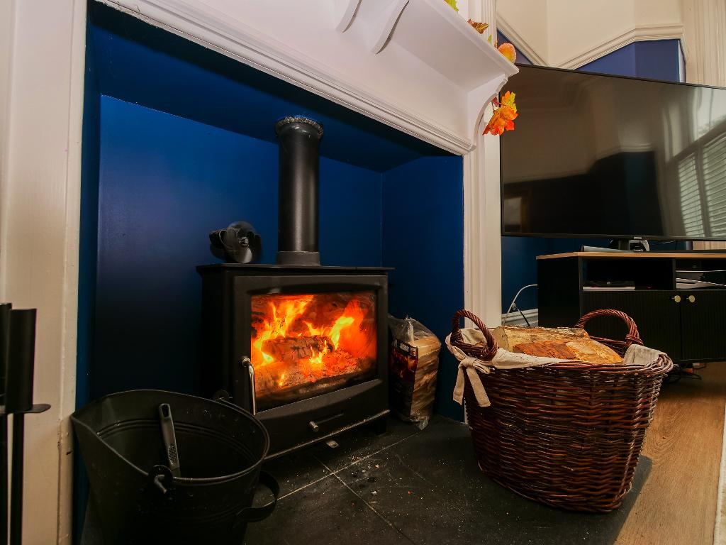 To the right, the living room is bright yet wonderfully cosy, featuring a log burner that fills the room with warmth and character. To the left, a second reception room currently serves as a dining room, flooded with natural light from the elegant bay window. At the rear of this room is a versatile office space with its own outside access, ideal for working from home.