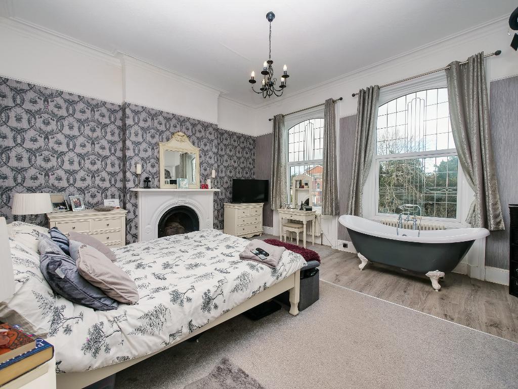 Upstairs, the home"s Victorian character meets a thoughtful modern twist. The master bedroom is a superb size, with bright windows and even a stylish freestanding bath in the corner, creating a boutique-style retreat. This floor also offers a beautifully finished family bathroom, along with three further bedrooms that make exceptional use of the property"s tall Victorian ceilings. Each of these bedrooms is designed over two levels, with a lower living space and stairs leading up to a raised sleeping area, an intelligent and attractive use of space with a warm wooden finish throughout. The bedroom at the rear also benefits from its own contemporary ensuite, styled to complement the wooden detailing.