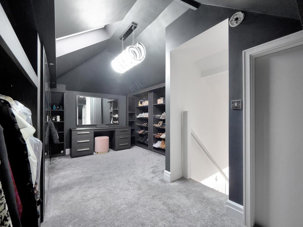 The third floor is equally impressive, housing a stunning dressing room with extensive wardrobe space, dedicated shoe storage and a grand mirror, a truly luxurious addition. A separate storage room on this floor further enhances the practicality of the home.