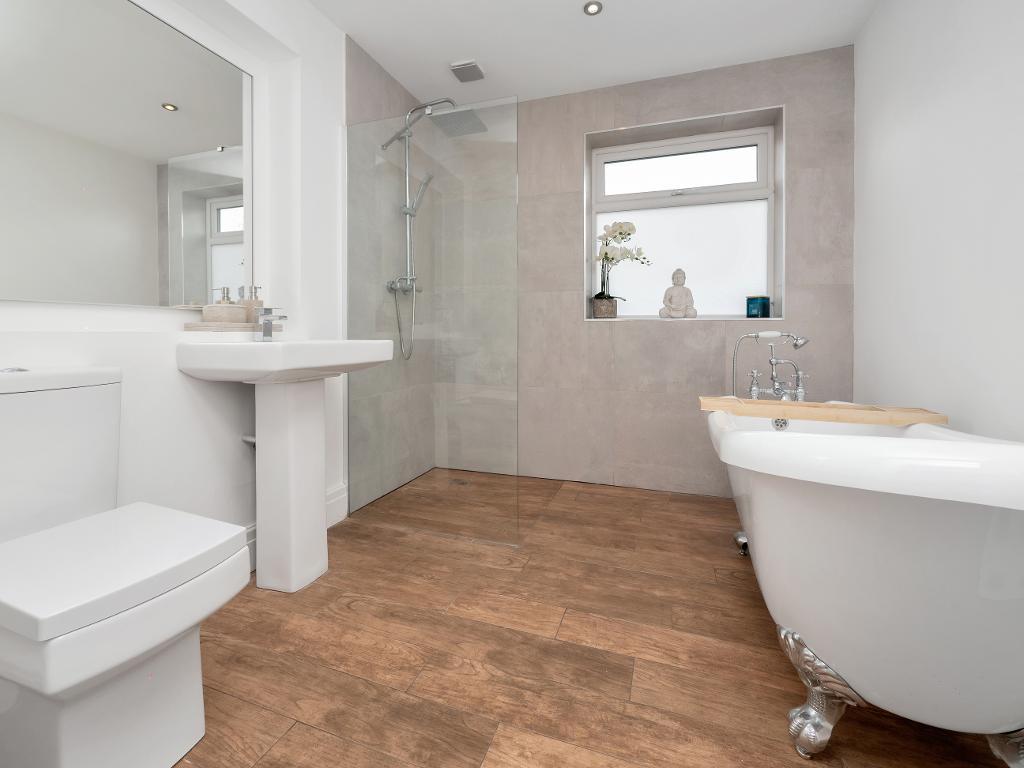 Ascending to the second floor, you arrive on a bright and spacious landing. Immediately to the left is the stylish family bathroom, featuring a luxurious freestanding bath alongside a modern wet room style shower. The master bedroom, positioned at the rear of the property, is an impressive and tranquil space, boasting a large window with beautiful views over the garden and an abundance of natural light. The master suite is further enhanced by a generous ensuite with a large wet room style shower. There are three additional bedrooms on this level, all offering excellent space and versatility for family living.