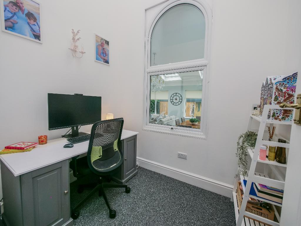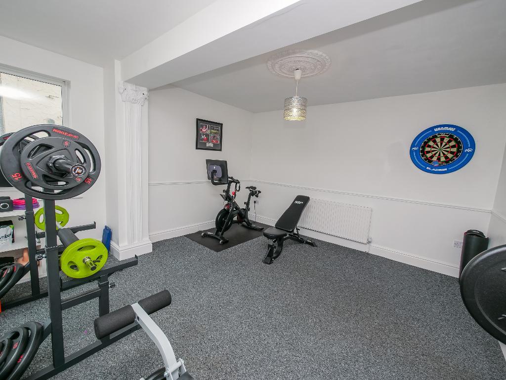 Completing the ground floor is a home office, a further room currently used as a gym, and a beautifully presented downstairs WC, ensuring practicality matches the home"s elegance.