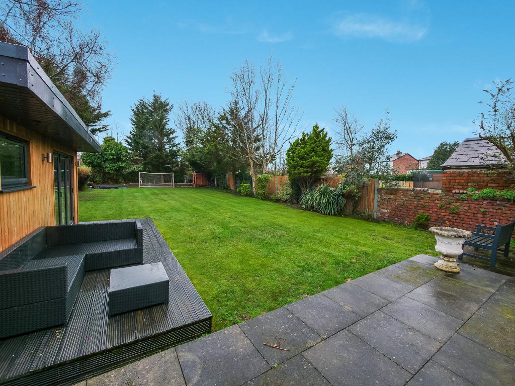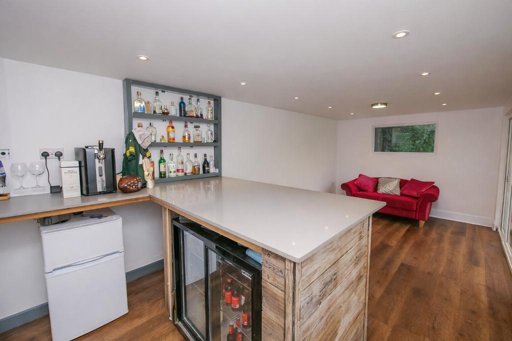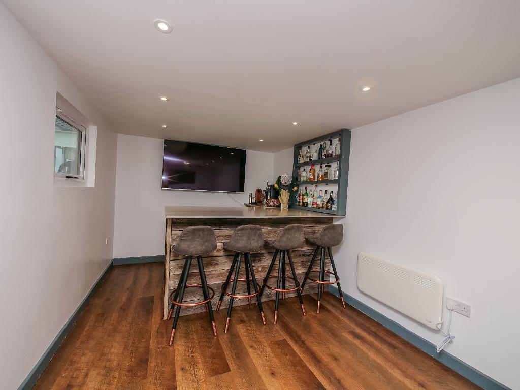 Externally, the rear garden is truly impressive. Predominantly laid to lawn, it also features a decking area directly accessed from the house. A standout feature is the superb indoor bar area, perfect for hosting friends and family all year round.