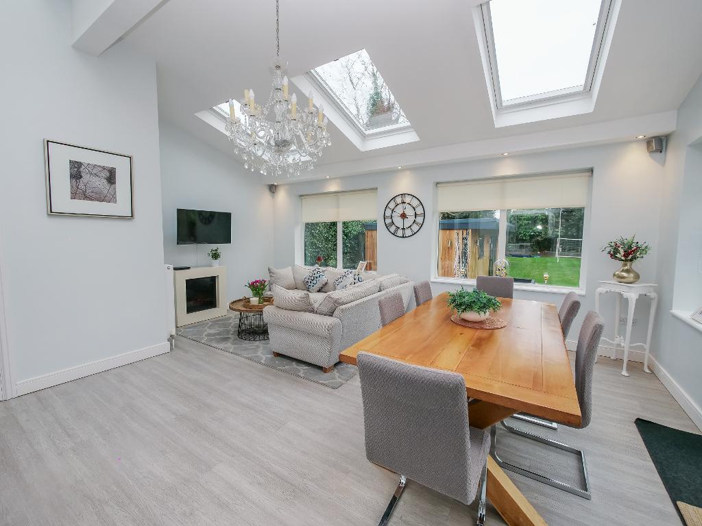 The heart of the home is undoubtedly the show stopping kitchen. Finished to an exceptionally high standard, it boasts plenty of countertop space, quality fittings and a central island that provides both functionality and a stylish focal point. Flowing seamlessly from here is the spacious sitting/dining room, an ideal setting for entertaining, with double doors opening out onto the garden, effortlessly blending indoor and outdoor living.