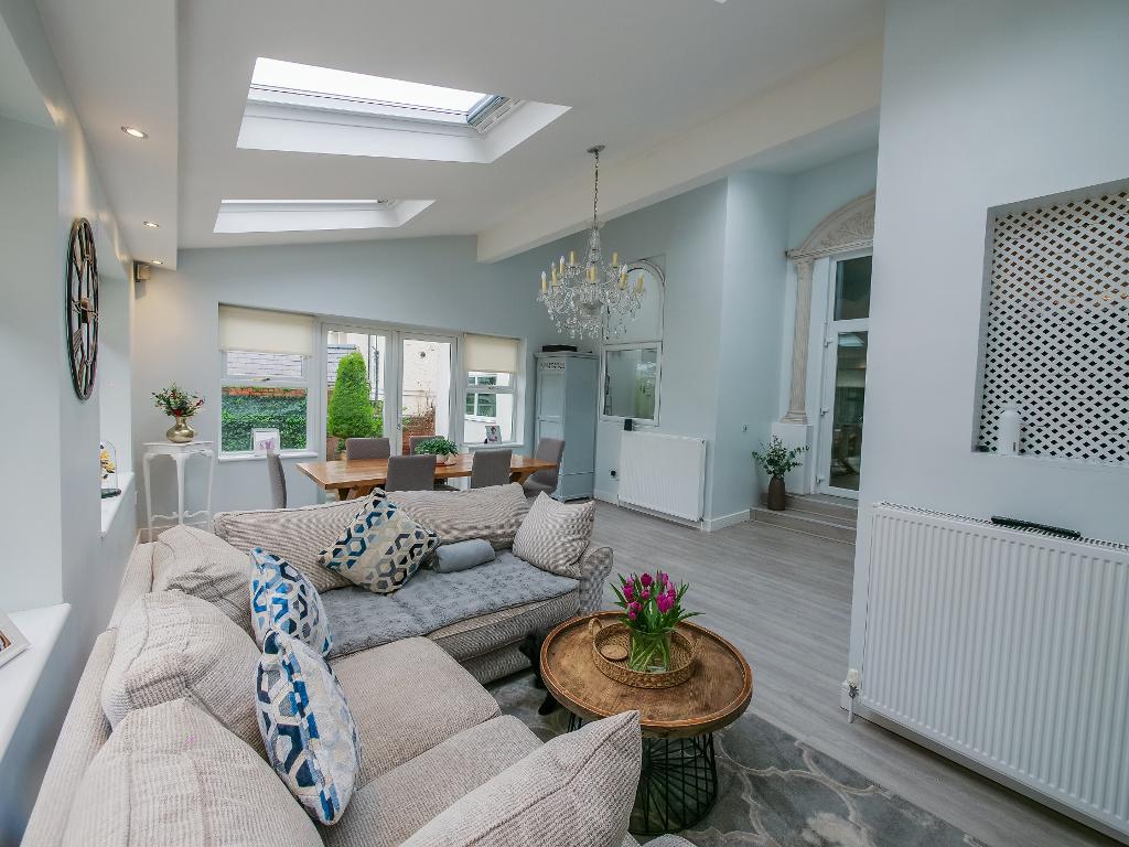From the moment you step inside, you are greeted by a bright and airy entrance hallway that immediately sets the tone for the rest of this impressive home. To the left, a stunning lounge enjoys a large bay window that floods the room with natural light, creating a warm and inviting space to relax. To the right, a second living room offers a cosy and homely feel, perfect for quieter evenings or family gatherings.
