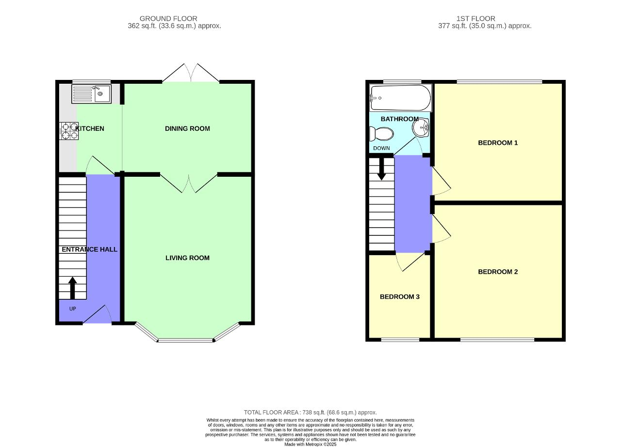 Upstairs, the property boasts three good sized bedrooms, making it ideal for a small family or first time buyers. A family bathroom completes the first floor.