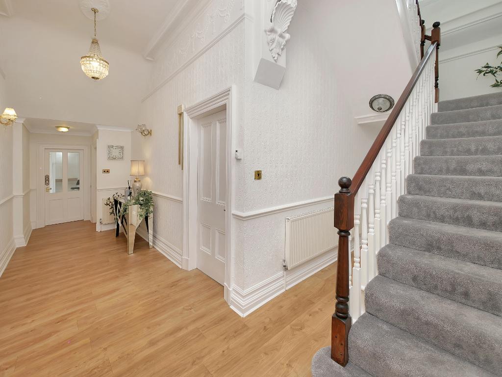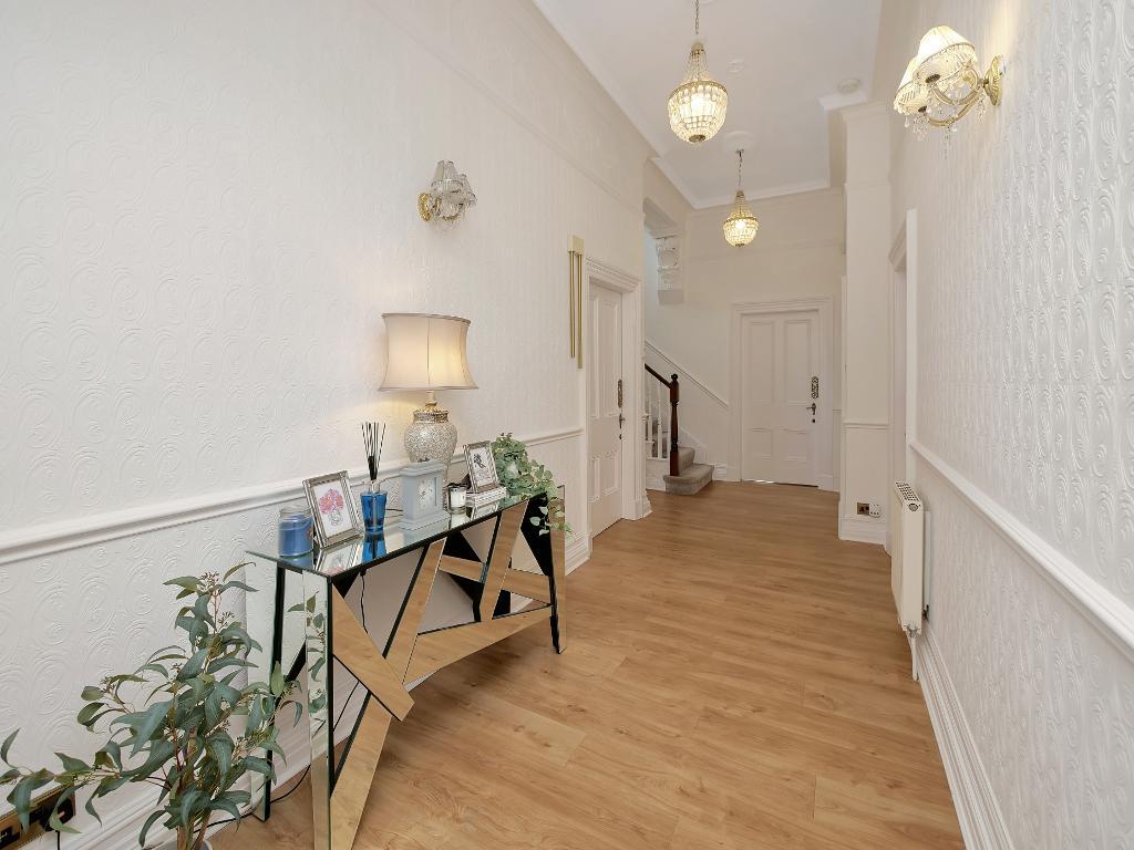 Upon entering the home, you are welcomed into a grand entrance hallway that immediately sets the tone for the rest of the house. At the front of the property are two beautifully presented and generously sized reception rooms, currently used as the main living room and lounge. Both spaces offer an abundance of natural light and provide ideal areas for relaxing or entertaining.