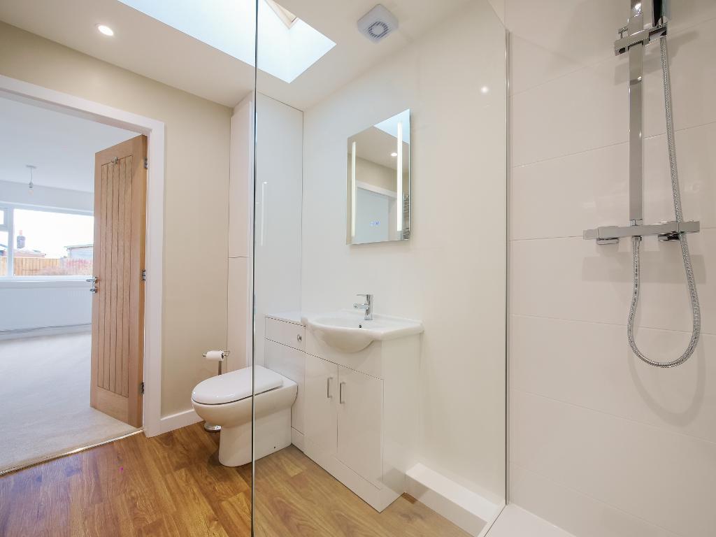 Returning to the hallway, there are three generously sized bedrooms, each immaculately presented and filled with natural light. The main bedroom benefits from direct access to the beautifully appointed shower room, effectively creating a private ensuite feel. The shower room itself is finished to a high standard with quality fittings and a sleek, contemporary design.