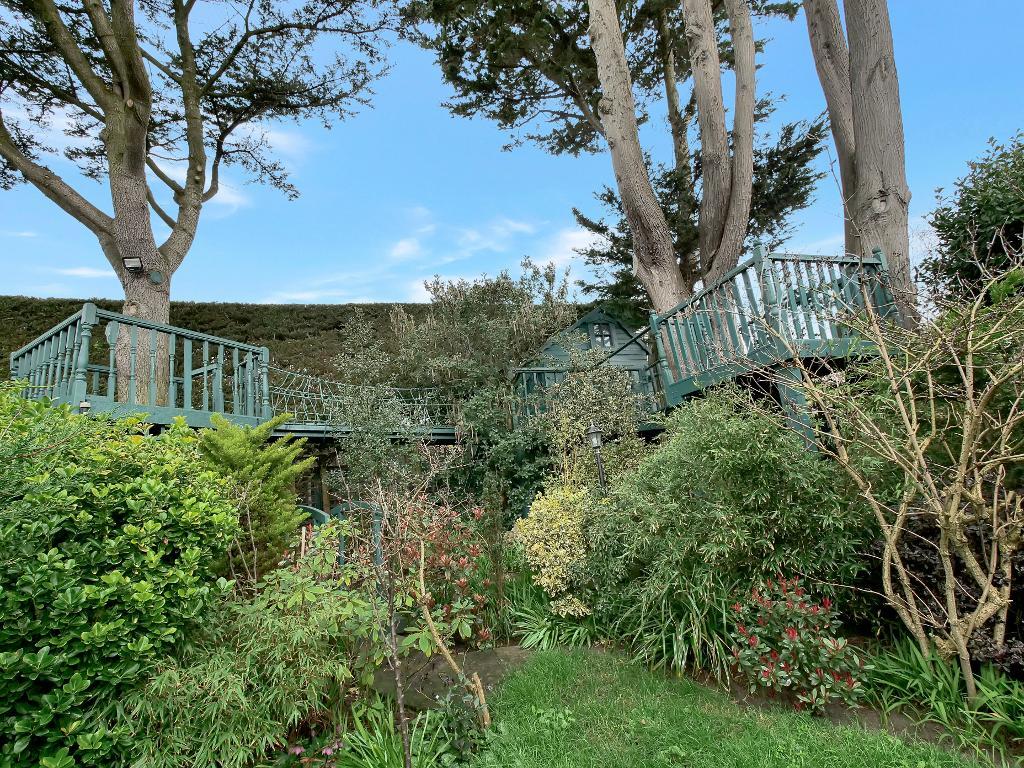 Outside, the well established garden is a true standout feature of this property. A terraced area, leads to a beautifully maintained garden filled with a variety of flowering bushes, fruit trees, and a well kept lawn. A particularly impressive addition is the fully powered treehouse. A workman's toilet accessed from outside adds further practicality. Externally, the garden is further enhanced by the addition of external electric sockets, providing practical convenience for outdoor living, gardening equipment, or entertaining. The garden also features a double greenhouse, complete with well-established grape vine , offering an attractive and productive space for gardening enthusiasts.
