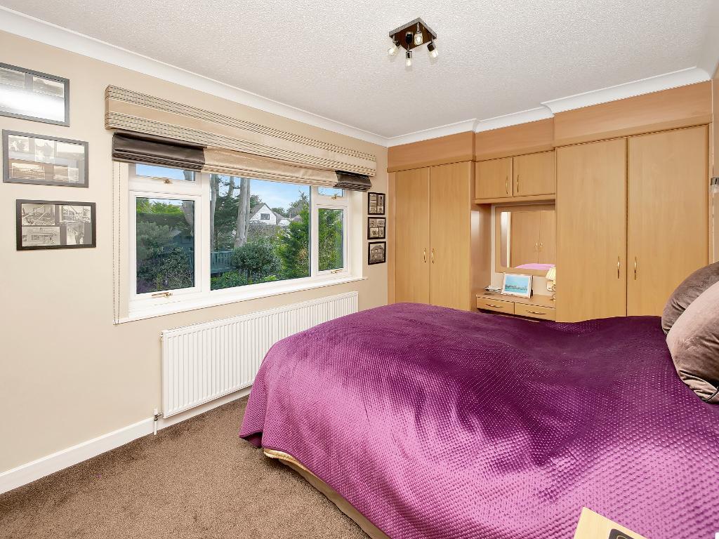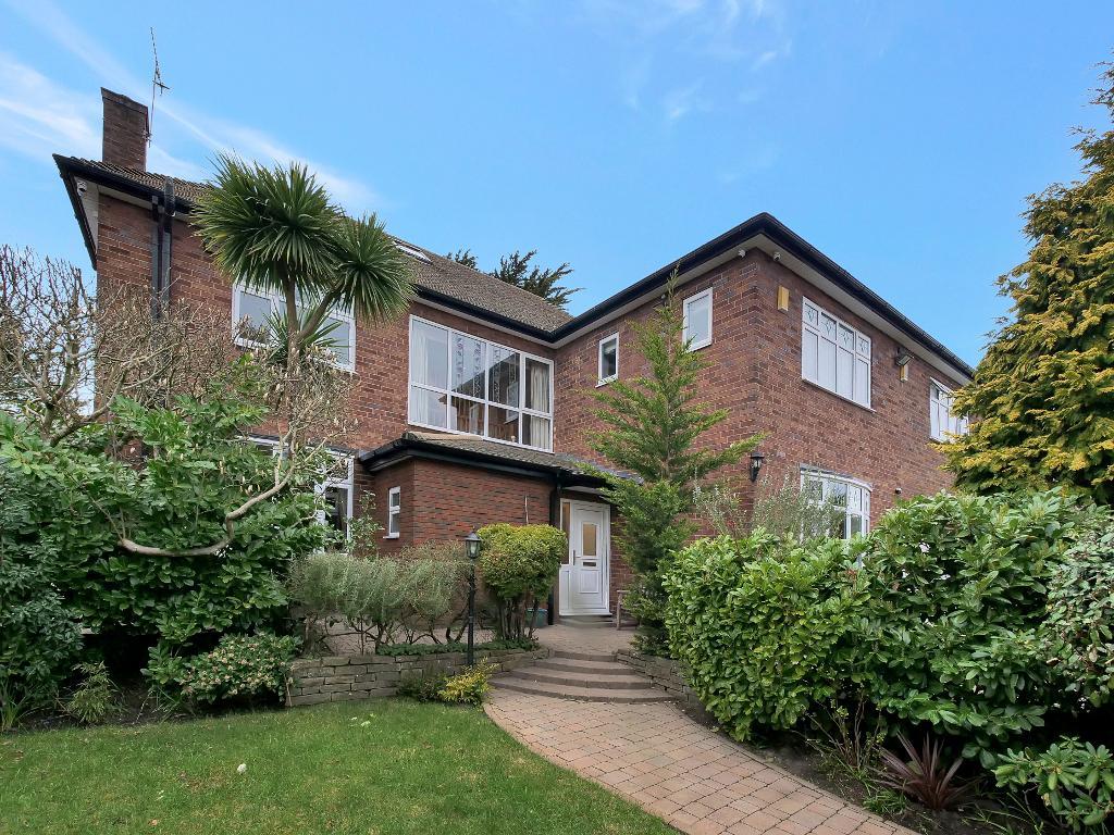 The front of the property continues to impress, with a landscaped garden to one side providing privacy through mature trees and shrubs, while the other side offers driveway parking and access to the garage.
