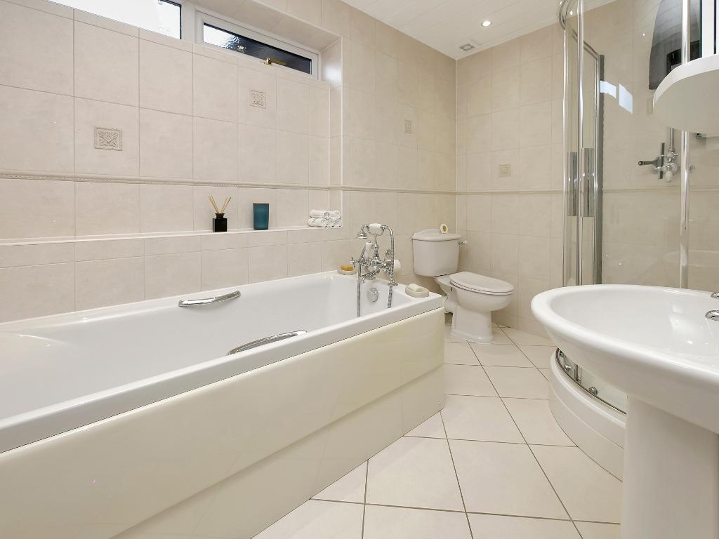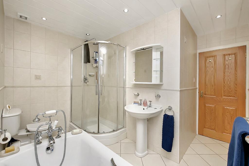 Upstairs, the second floor opens onto a bright and airy landing. Bedrooms one and two are tucked away along their own private corridor. Bedroom one is a well proportioned room at the front of the property, while bedroom two, located at the end of the corridor, benefits from built in wardrobes and an ensuite featuring both a bath and shower. Back on the main landing, you will find three additional bedrooms, all generously sized and complete with built in wardrobes. Bedroom three also enjoys its own ensuite with a corner bath. A modern family bathroom with both a bath and shower completes this floor.