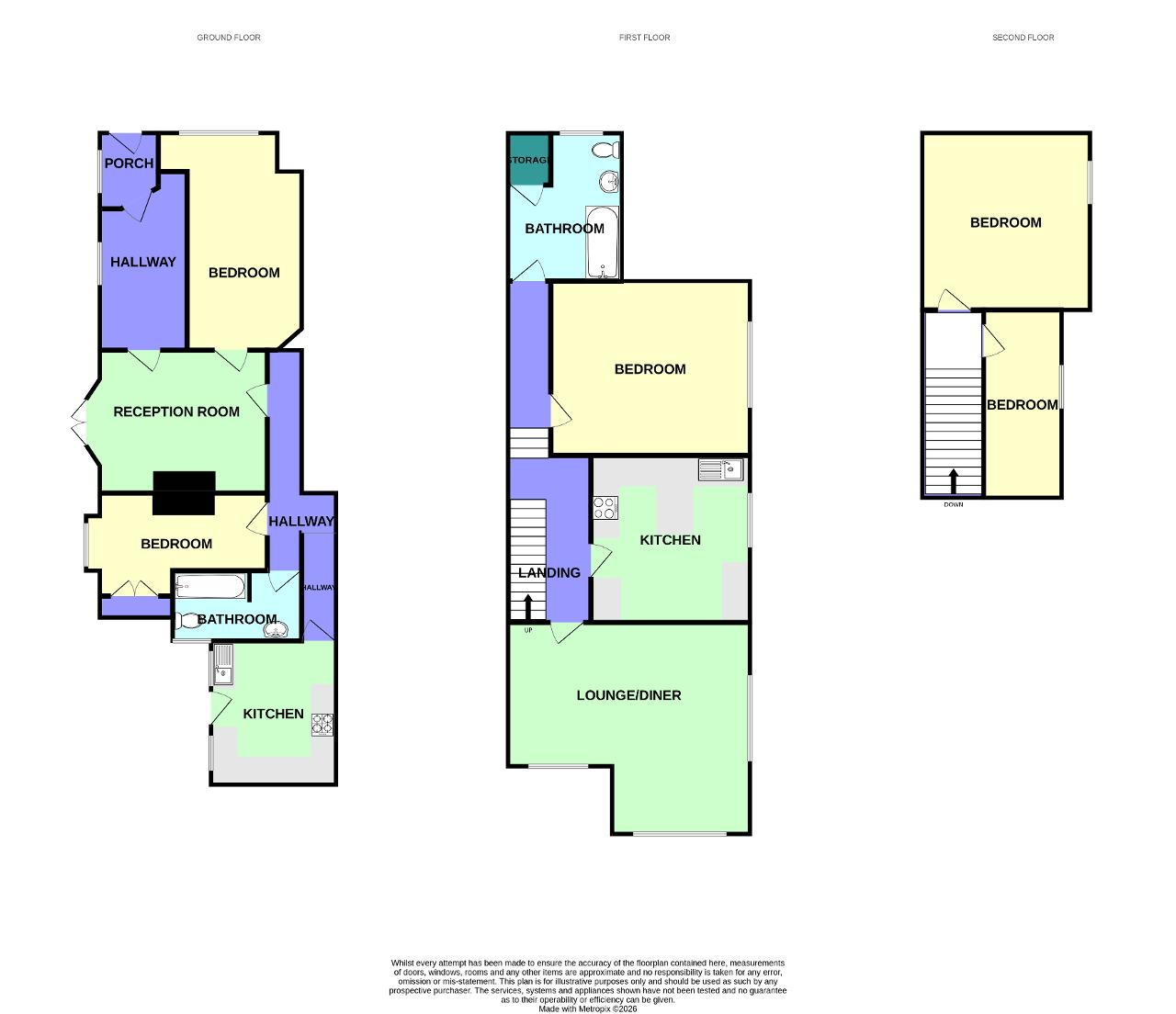 The second property forms a spacious maisonette arranged over the upper floors and is accessed via its own private pathway which leads to a storm porch and separate entrance doorway. Stairs rise to the first floor landing where there is access to a generous front lounge and a well-proportioned double bedroom. Also located on this level is a spacious breakfast kitchen together with a family bathroom. A further staircase leads from the landing to the second floor where two additional bedrooms are located, creating a well-balanced and practical layout.