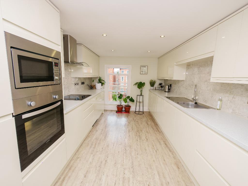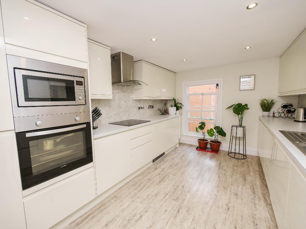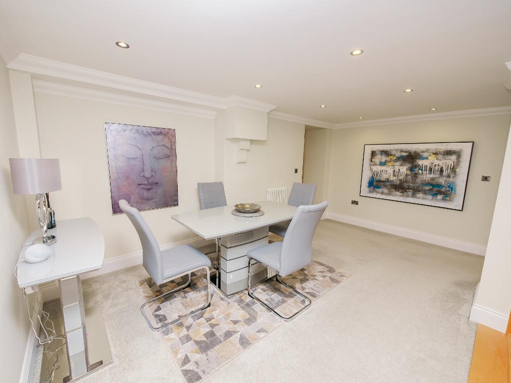 Adjacent to the dining area is a stylish, contemporary fitted kitchen, complete with integrated appliances and ample storage, ideal for both everyday living and entertaining.