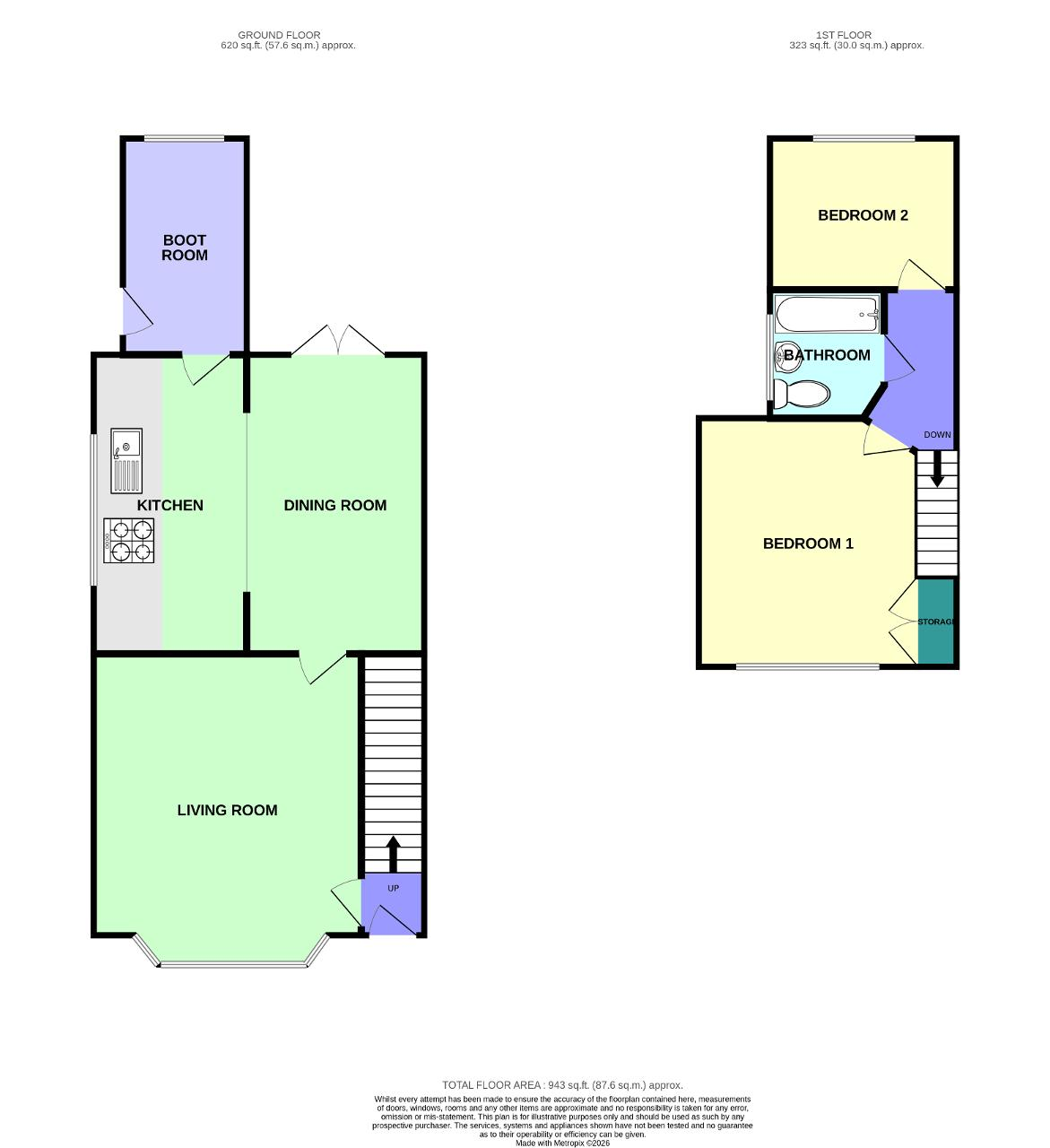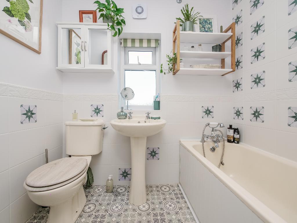 Upstairs, the cosy and homely feel continues throughout. The first bedroom, located at the front of the property, a good sized room filled with natural light. The second bedroom, positioned at the rear, is also a good size and offers a peaceful retreat. The bathroom completes the first floor, featuring a full size bath and finished to a lovely standard.