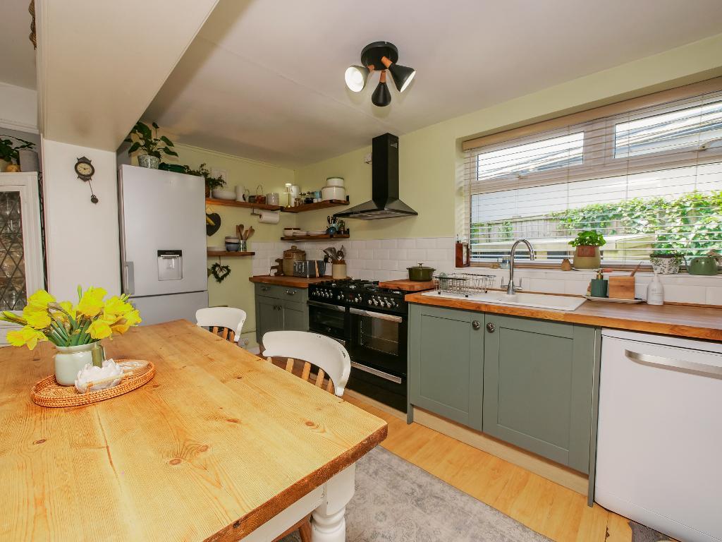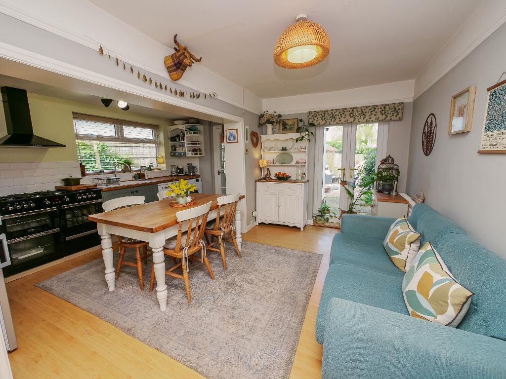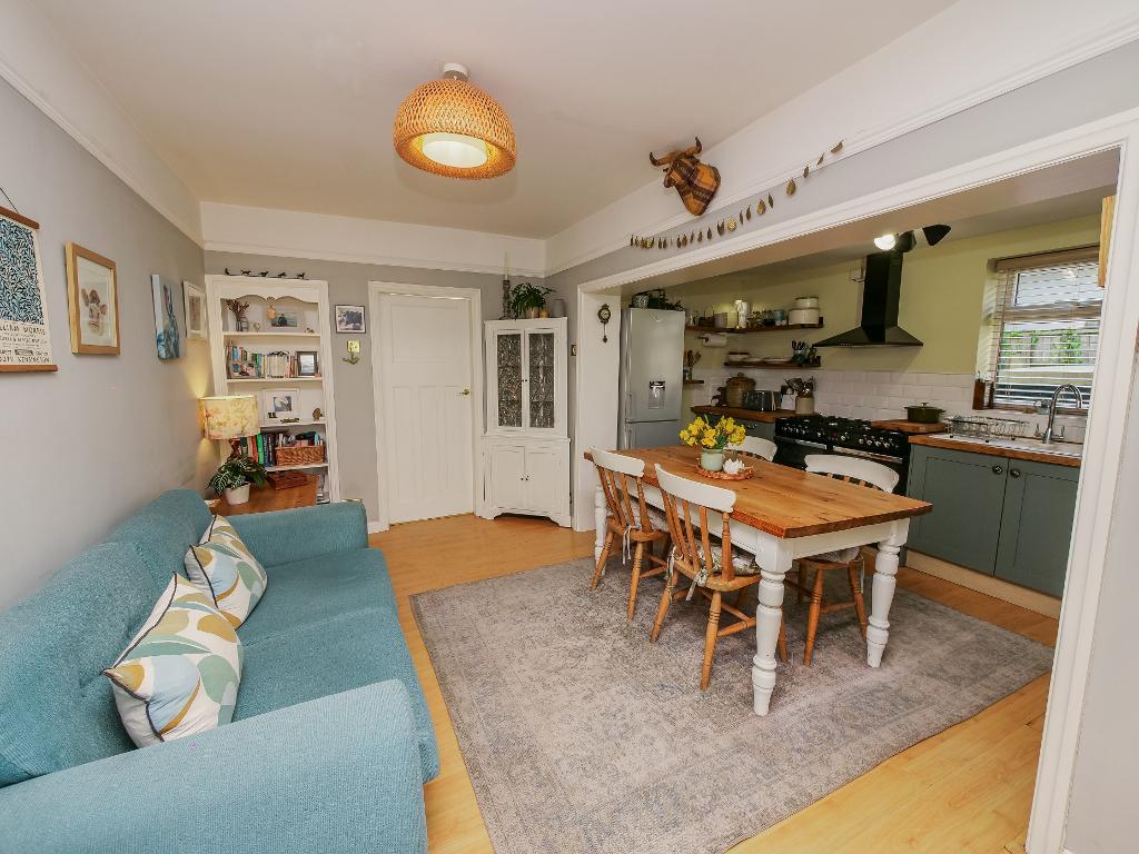 To the rear of the property is the stunning kitchen and dining area. The kitchen has been finished to a high standard, offering ample counter space and a stylish yet practical layout. The dining area is a good size, providing plenty of room for both a dining table and additional seating, perfect for entertaining or family life. Completing the ground floor is a useful boot room, ideal for everyday practicality.