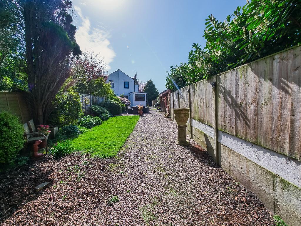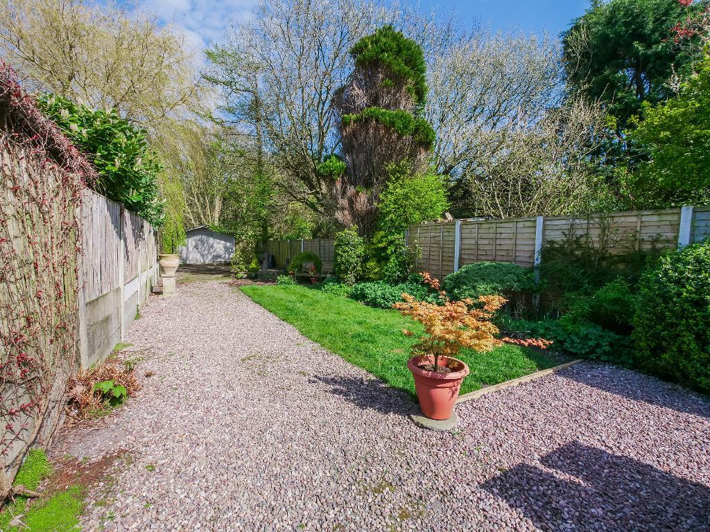 Externally, the garden is a standout feature of this delightful home. A gravelled seating area leads directly from the house, opening out onto a generous lawn that forms the majority of the garden. To the rear, a paved area houses a good sized shed, while the garden wraps around the side of the property, leading to the front driveway, offering both space and versatility.
